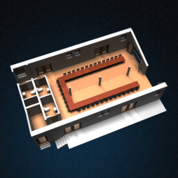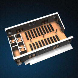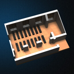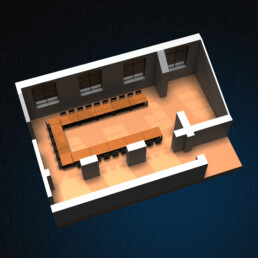 Diese Stehplatz-Variante bietet Platz für 150 Personen und ermöglicht ein angenehmes Zusammenkommen im Raum bei gleichzeitig fließender Bewegungsfreiheit während der Veranstaltung.