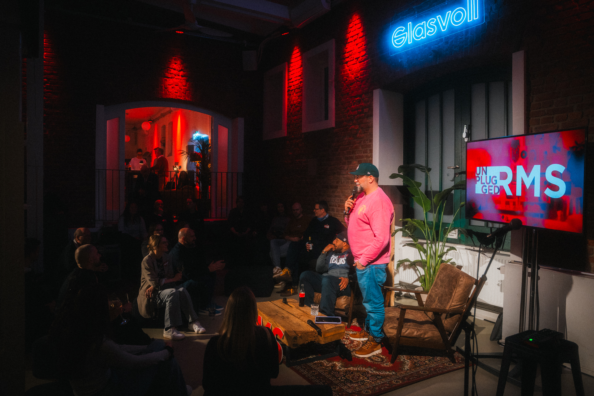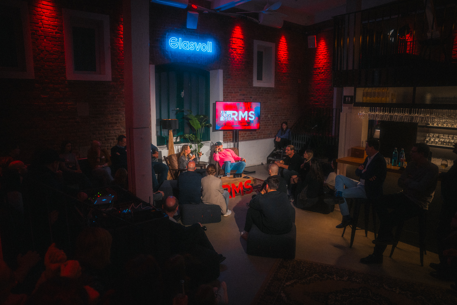 RMS visited the Glasvoll event location with 70 guests for a roadshow. In a relaxed atmosphere, an interview with Reece Moore and Giana Bacio, live vocals by the artist Akryl, and a special audio experiment with masks created an intense listening experience.