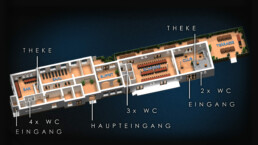 Neben der reichen Geschichte ist eine weitere Besonderheit unsere modulare Raumaufteilung. Durch das Zusammenlegen oder Abtrennen der unterschiedlichen Eventräume können sowohl kleine als auch große Events stattfinden. Jeder Raum ist einzigartig und umfasst zwischen 50 m² und 150 m². Die gesamte Eventfläche beträgt 600 m², zuzüglich einer 200 m² großen Terrasse, und eignet sich ideal für Veranstaltungen von 30 bis 400 Personen.