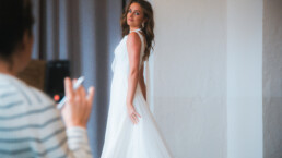 MadiLane stellte im Glasvoll die neue Brautmoden-Kollektion vor. Exklusiv geladene Gäste erlebten zunächst eine Modenschau im Saal, bevor sie die Kleider im Showroom in der Scheune begutachten und für den eigenen Store ordern konnten.