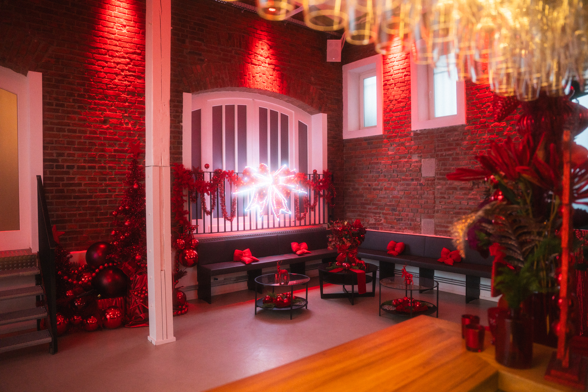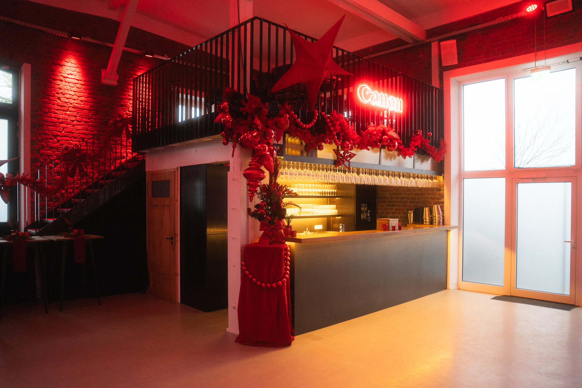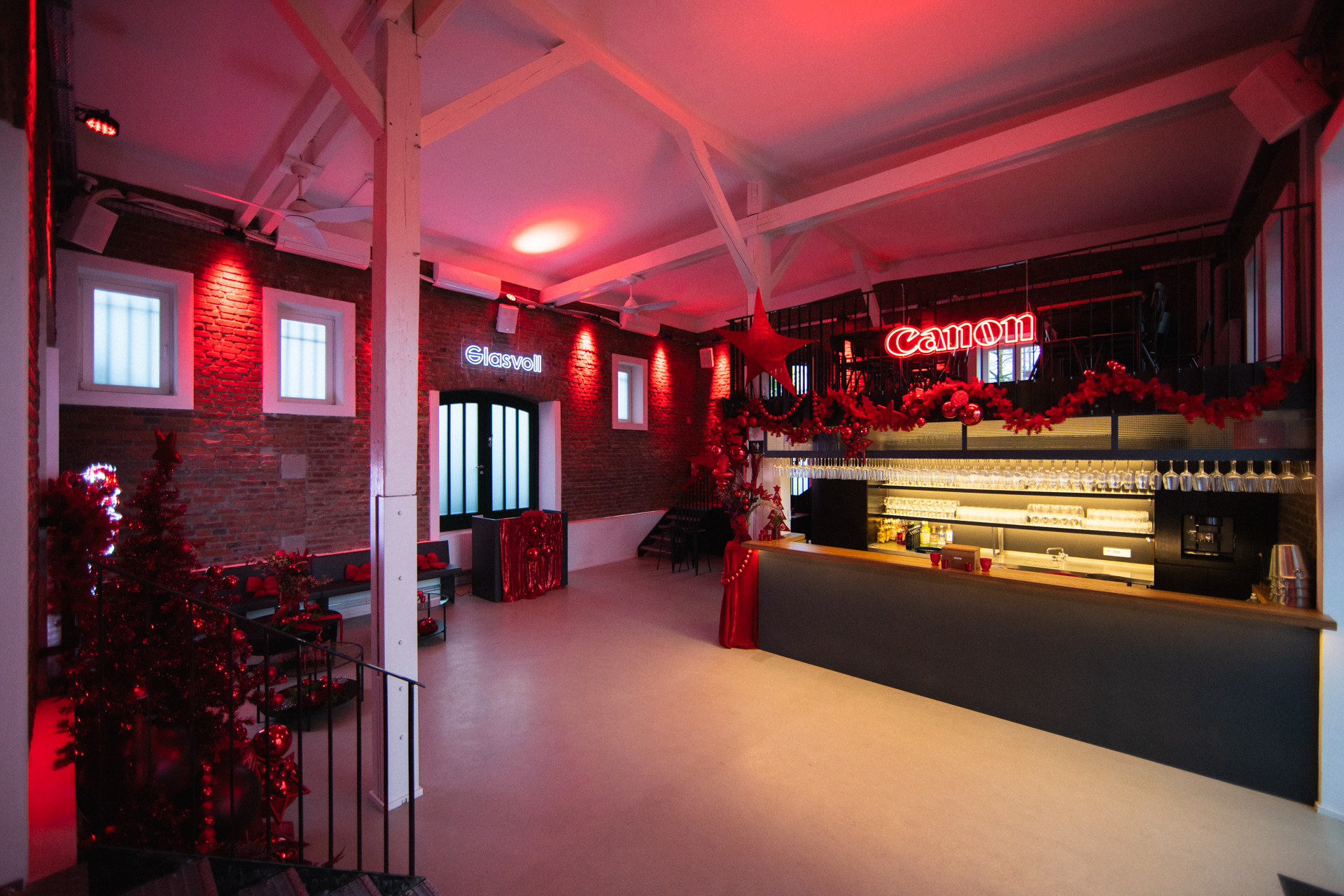 Die Mischung aus industrieller Architektur, originalen Backsteinwänden und stilvoller Beleuchtung schafft eine einladende und warme Atmosphäre. Genießen Sie Ihre Weihnachtsfeier in einem festlich dekorierten Ambiente, das für eine unvergessliche Feier sorgt.